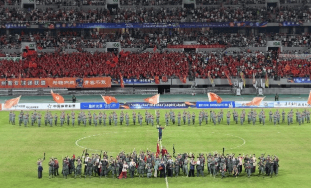 更为关键的是,赣超注重融入地方文化基因,尤其突出红色文化的表达。作为中国革命的重要策源地之一,江西充分利用其深厚的革命历史资源,在多个主场营造极具情感共鸣的观赛氛围。8月底赣州对阵吉安的比赛当晚,四万名观众手持灯光点亮看台,汇成星海,《十送红军》的旋律响彻球场,场面震撼人心,迅速在社交平台广泛传播。吉安主场奏响《映山红》,九江赛区通过情景剧再现1998年抗洪抢险的军民鱼水情,这些精心设计的文化环节使比赛超越了竞技本身,升华为一场集体记忆的唤醒仪式。网友戏称:“仿佛是在文艺演出中插播了一场足球赛。”