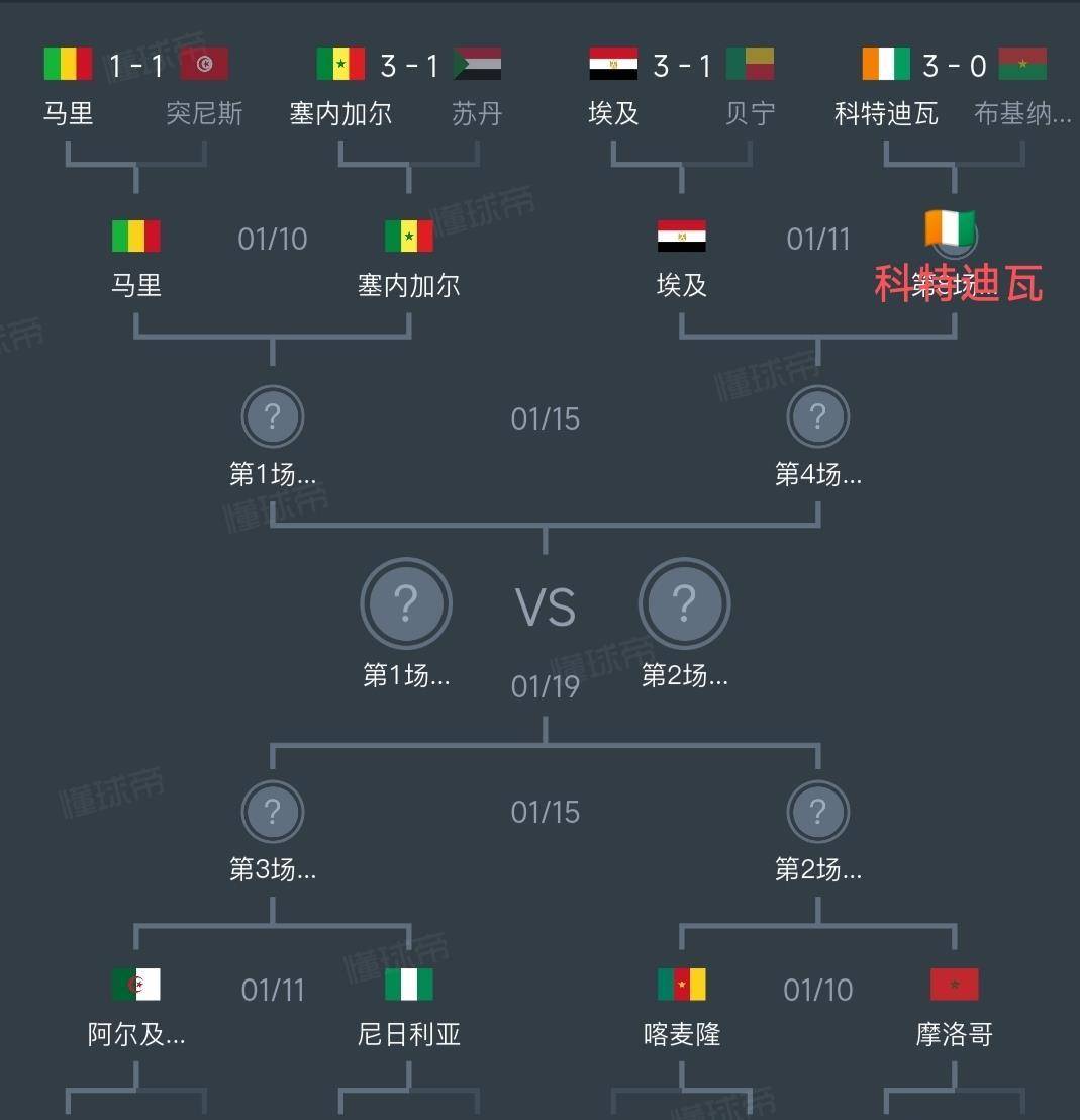 四分之一决赛的对阵形势随即确定,几乎每一场都堪称决赛预演。 上半区,马里将与塞内加尔争夺一个四强席位;而最引人注目的对决无疑是埃及与科特迪瓦的提前相遇。